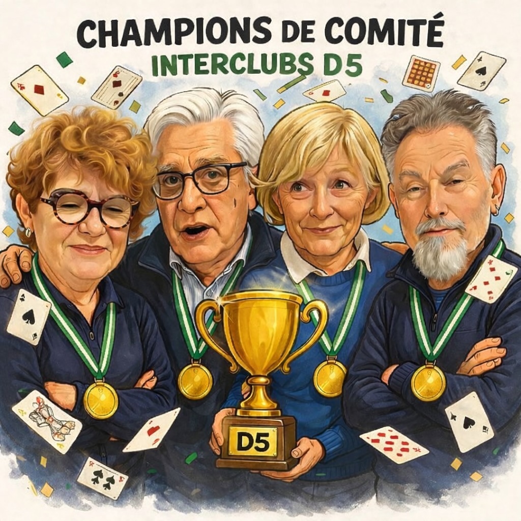 La palme des deux compétitions du week-end revient sans contestation possible à la quadrette de Marie-Line Grahovac (Marie Bertaux, Jean Denouette, Jean-Marie Leroy) championne de comité de l'interclubs D5 après sept victoires de rang acquises de la plus belle des manières et une avance plus que confortable sur ses suivants immédiats. Ce succès envoie la formation elbo-saint-aubinoise en finale de ligue de la D5. Si, Marie-Line et ses coéquipiers ont réalisé un parcours parfait, il n'en a pas été de même pour la quadrette de Christian Tassel (Agnès Chérot, Denise Mulet, Odile Ternon, Max Chéron, Antoine Grimbert) laquelle a navigué dans les eaux troubles du classement durant toute la compétition. Après un samedi catastrophique 23ème/24 à l'issue du 3ème tour, les partenaires de Christian se sont quelque peu ressaisis le dimanche avec quasiment deux nuls dont un sans jouer et deux petites victoires lesquelles leur ont permis de remonter à la 17ème place plus conforme à leur indice de compétition. Tous nos compliments à l'équipe de la D5 pour sa brillante performance.